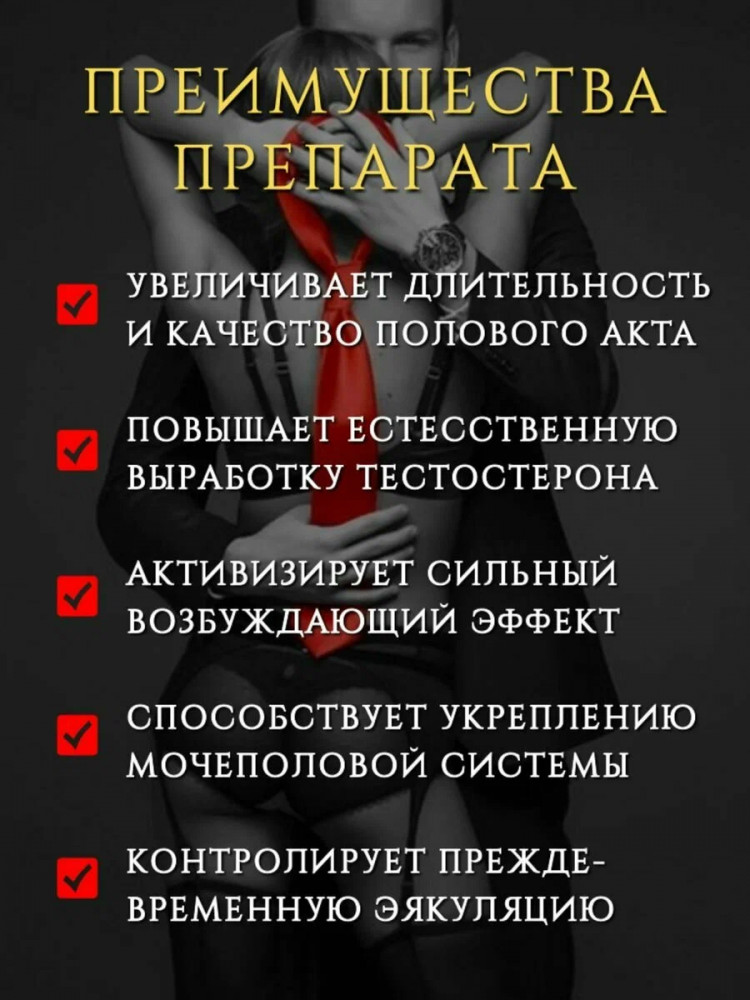 Долгое и насыщенное удовольствие: не секрет, что продолжительность интимного акта имеет огромное значение. Viagra 123 возбудитель для мужчин эффективный поможет тебе наслаждаться каждым мгновением без ограничений. Открой для себя новые грани наслаждения и удовлетворения! Сильный возбудитель для мужчин борется с половым бессилием, преждевременной эякуляцией и воспалением простаты. Эти таблетки для секса повышают уровень тестостерона — главного гормона мужской силы, и обеспечивают увеличение члена!