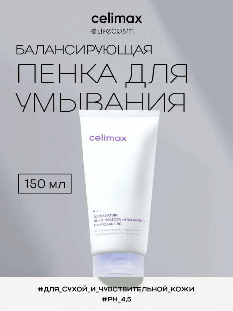 Celimax Слабоксилотная очищающая пенка для умывания «Derma Nature Relief Madecica pH Balancing Foam Cleansing»