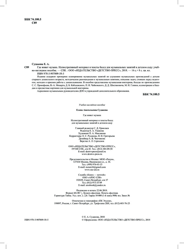 💳 Оплатить за товар можно при получении 🇰🇿 Есть бесплатная доставка по Казахстану от 1 дня 🎁 Копите бонусы с каждой покупки Серия: Музыкальное воспитание и развитие Альбом содержит примерное планирование музыкальных занятий по слушанию музыкальных произведений с детьми старшего дошкольного возраста, методические рекомендации к музыкальным занятиям, описание целей и задач музыкальных занятий, методов и приемов работы с дошкольниками. В пособии представлены музыкальная викторина, беседы по произведениям С. С. Прокофьева «Марш», В.-А. Моцарта «Колыбельная», Д. Б. Кабалевского «Клоуны», П. И. Чайковского «Марш» (из балета «Щелкунчик»), Д. Д. Шостаковича «Вальс-шутка», М. И. Глинки «Детская полька», иллюстрации к каждой беседе и предметные картинки для музыкальной викторины. Адресовано музыкальным руководителям ДОО и учреждений дополнительного образования. |