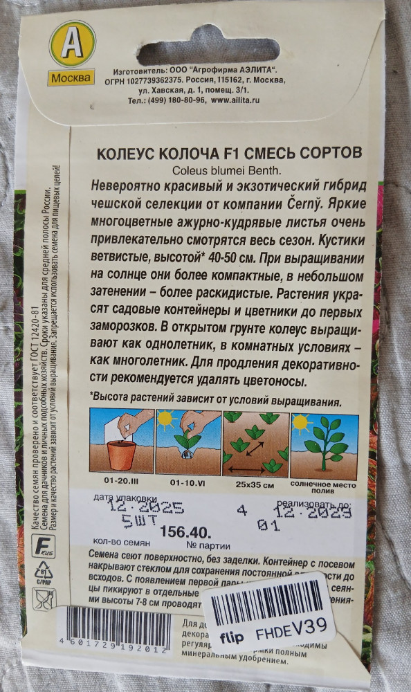 Аэлита Семена колеуса, смесь сортов «Колоча F1»-25% +12