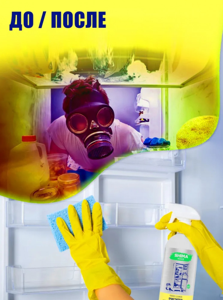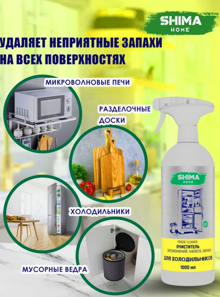 Fridge Cleaner подходит для обработки внутренних и внешних поверхностей холодильников, морозильных камер, автомобильных холодильников, микроволновых печей, кухонных шкафов, рабочих зон, разделочных досок, пищевых контейнеров и мусорных ведер.