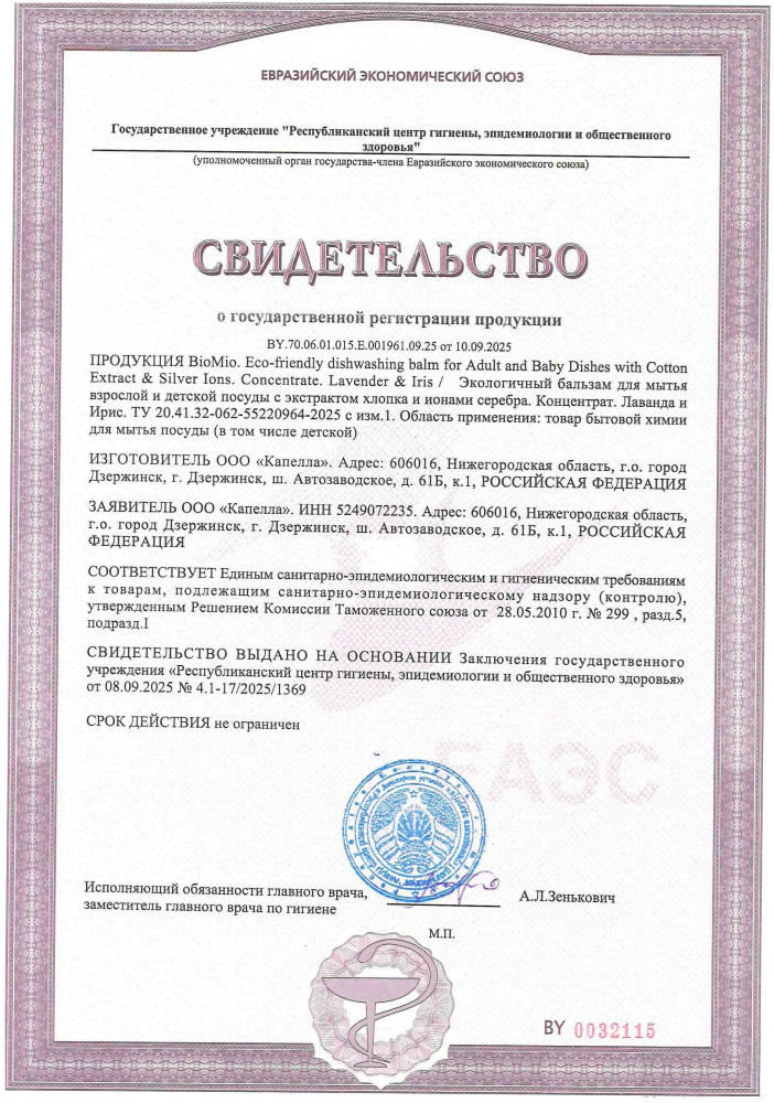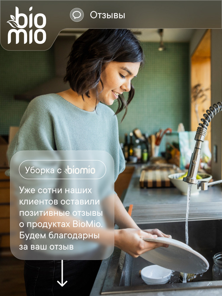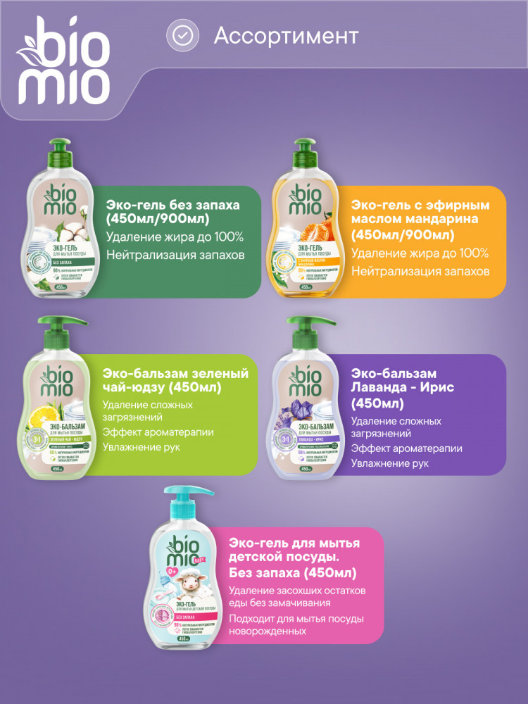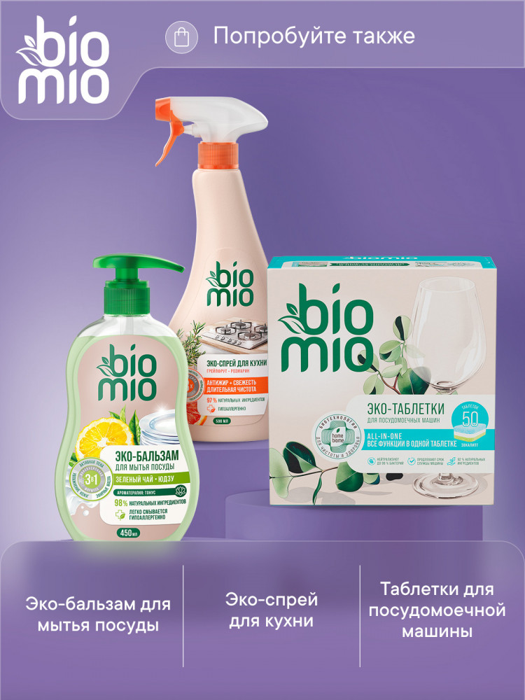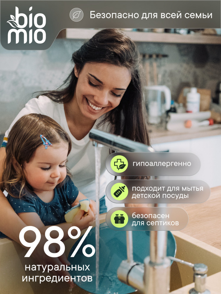 BioMio Экологичный бальзам для мытья взрослой и детской посуды с экстрактом хлопка и ионами серебра «Лаванда и Ирис»