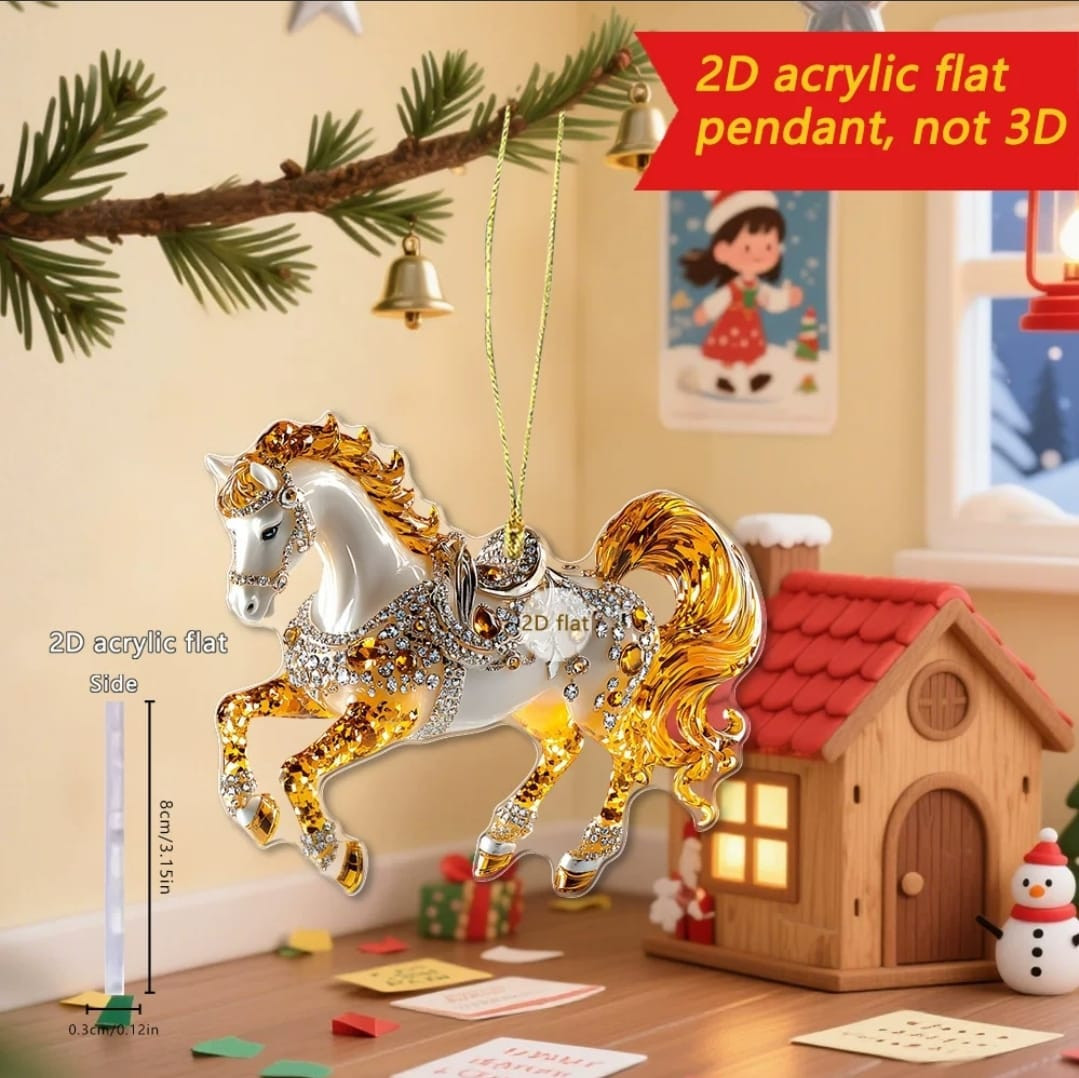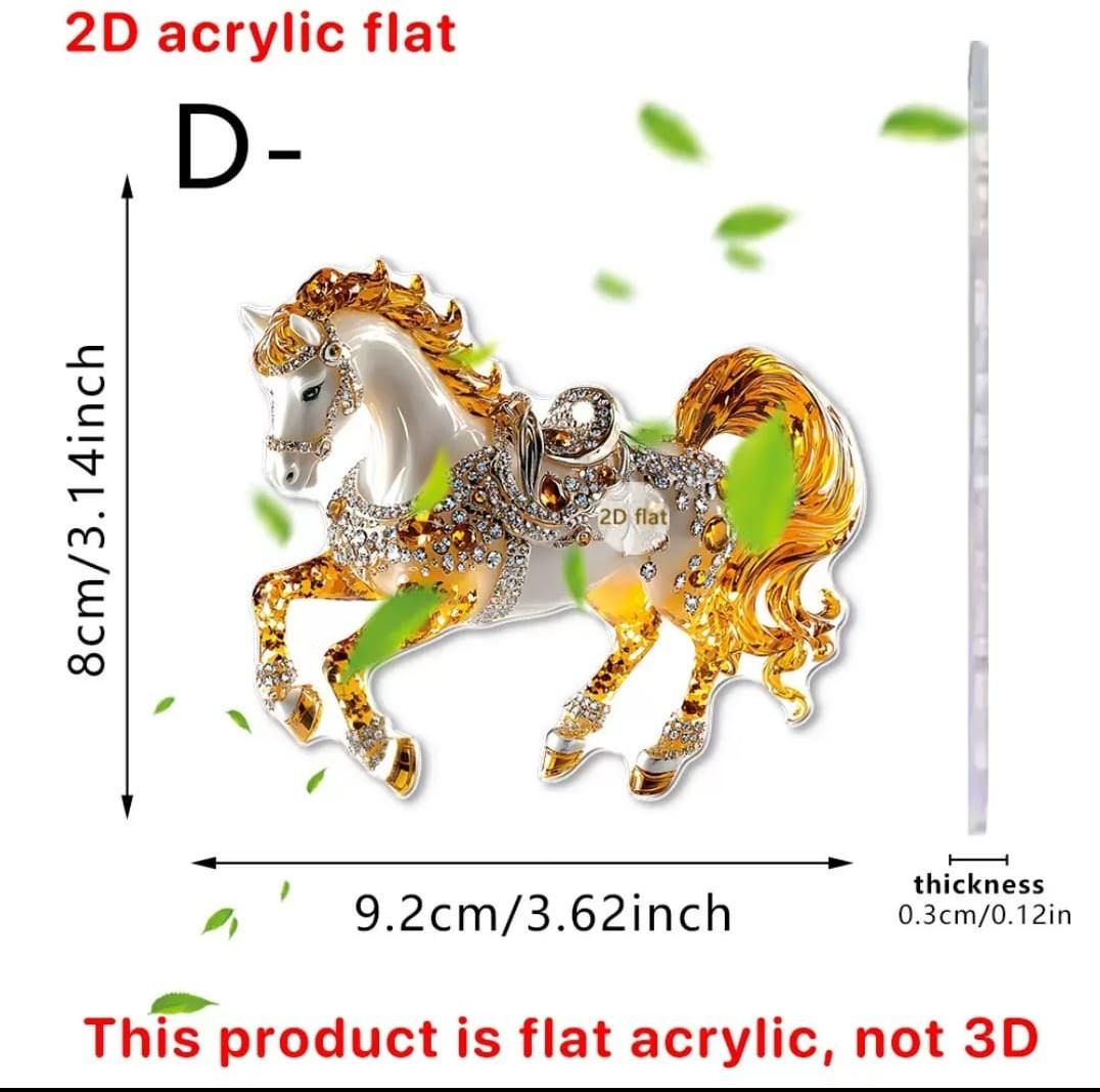 На изображении показана плоская акриловая фигурка (2D acrylic flat) в виде яркой лошади. Фигурка выполнена из прочного прозрачного акрила с ярким многоцветным рисунком. Поверхность плоская, не имеет 3D-рельефа. Подходит для украшений, поделок, брелков, декоративных элементов и других креативных проектов.