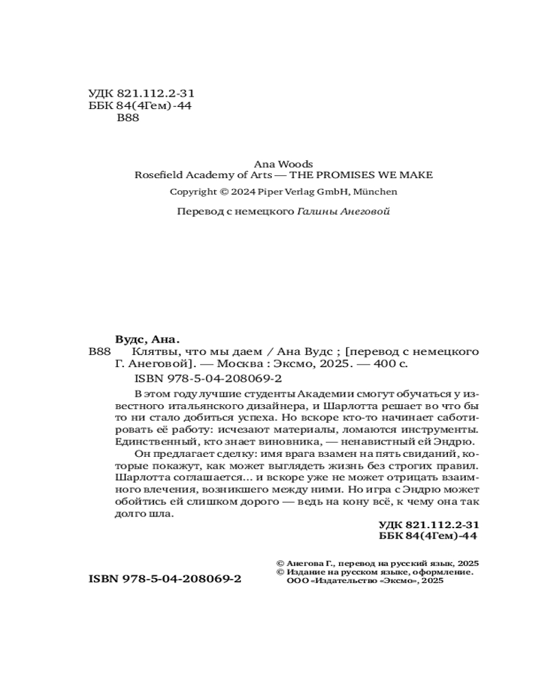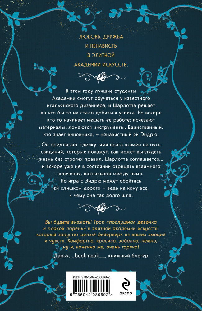💳 Оплатить за товар можно при получении 🇰🇿 Есть бесплатная доставка по Казахстану 🎁 Копите бонусы с каждой покупки Серия: Стихии любви. Ана Вудс В этом году лучшие студенты Академии смогут обучаться у известного итальянского дизайнера, и Шарлотта решает во что бы то ни стало добиться успеха. Но вскоре кто-то начинает саботировать её работу: исчезают материалы, ломаются инструменты. Единственный, кто знает виновника, — ненавистный ей Эндрю. Он предлагает сделку: имя врага взамен на пять свиданий, которые покажут, как может выглядеть жизнь без строгих правил. Шарлотта соглашается... и вскоре уже не может отрицать взаимного влечения, возникшего между ними. Но игра с Эндрю может обойтись ей слишком дорого — ведь на кону всё, к чему она так долго шла. |