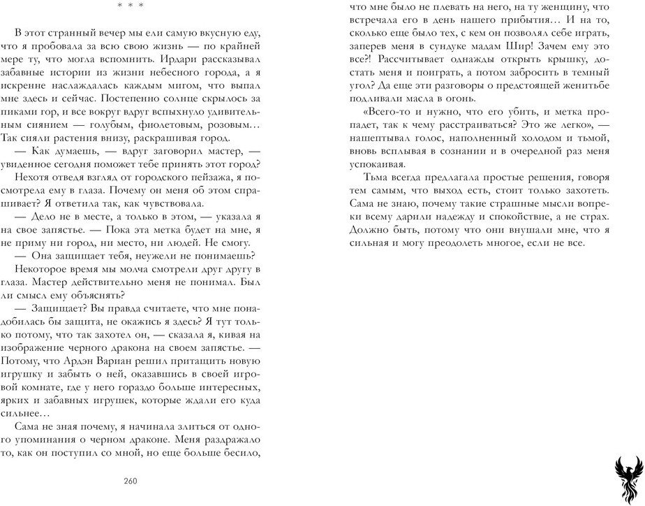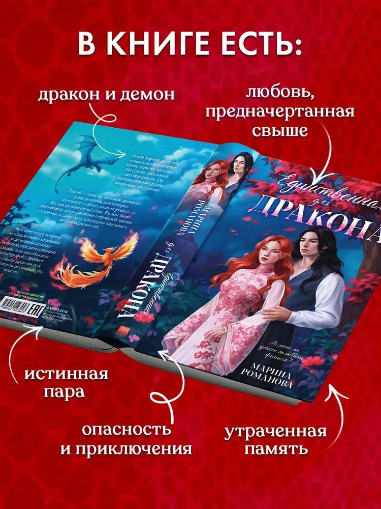 Серия: #trendbooks_magic Может ли дракон полюбить феникса? «Единственная для дракона» Марины Романовой — это захватывающее романтическое фэнтези о чувствах, способных изменить ход судьбы. Волшебная обложка и цветные иллюстрации Екатерины Елфимовой, цветные форзацы и атмосферное оформление страниц — красивый подарок для всех, кто обожает книги про любовь и магию. Ардэн Вариан — принц, в венах которого течет кровь черного дракона. Нет силы, способной его подчинить. Он привык решать судьбы, вверенные ему свыше. Лилэй — квисэн, потомок древнего рода демонов, для которых мужчины всего лишь игрушки. Но она не помнит об этом. Ее дом был уничтожен, воспоминания о прошлой жизни утрачены, и даже тело, в котором она живет, не принадлежит ей. Что принесет встреча непреклонного мужчины и женщины-демона? Любовь, предначертанную свыше, или неизбежную катастрофу? Дрогнет ли сердце дракона под натиском истинных чувств? |