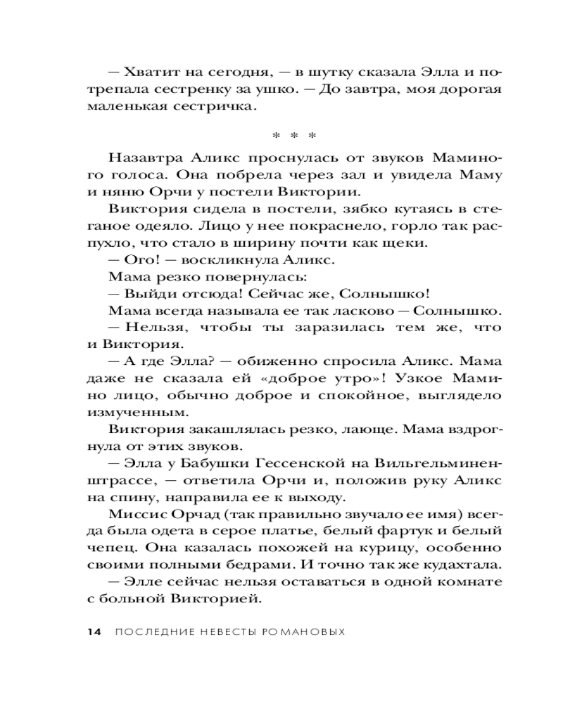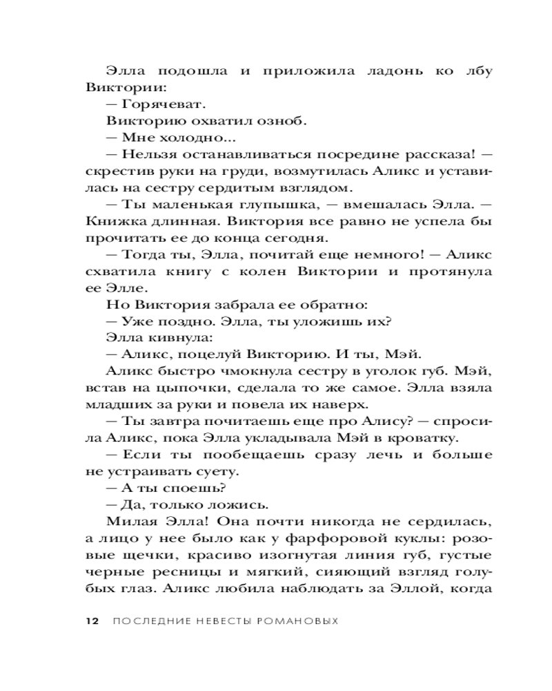 Серия: Novel. Судьбы Российской империи. Любовно-исторический роман на реальных событиях Любовь и драма царского двора: история Эллы и Аликс, двух сестер, связавших свою судьбу с последними Романовыми. Внучки королевы Виктории, юные принцессы Элла и Аликс — жемчужины европейских дворов конца XIX века. Их браки должны были стать частью большой политики, укрепить связи Англии и Германии. Но вопреки воле бабушки сестры влюбились в мистическую, загадочную Россию — и в Романовых.