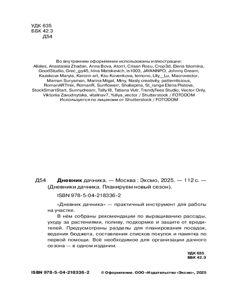 Серия: Дневники дачника. Планируем новый сезон Планируем новый сезон вместе с «Дневником дачника». Это удобный инструмент для организации работ на участке: от первых посадок до сбора урожая. Внутри собраны практичные советы и удобные таблицы, которые помогают ничего не упустить и вести дела системно. Все материалы собраны в одном месте, чтобы сезон проходил без лишних хлопот и с максимальной отдачей.  |