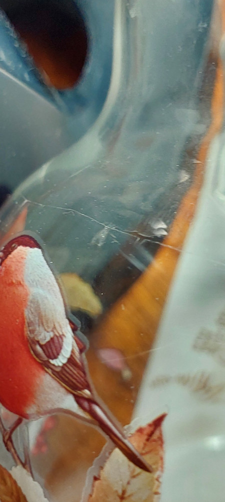 Грязное, вытертое тряпкой стекло с 2мя трещинами. К сожалению, в пункте выдачи обнаружить все это не смогла. Посмотрела, на вид целый, крышка чистая. Дома внимательно на просвет лампы увидела такую неприятность. Надеюсь, в ПВЗ примут назад. Ведь не первый раз покупаю стекло и такого ещё не встречала. На фото трещины.