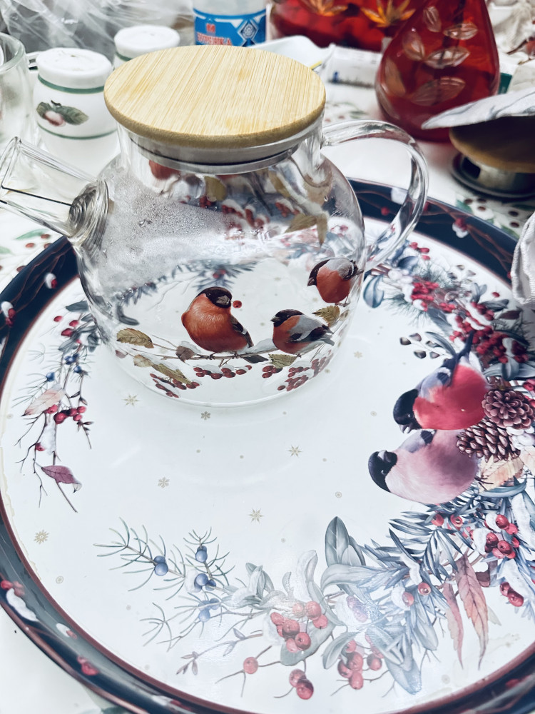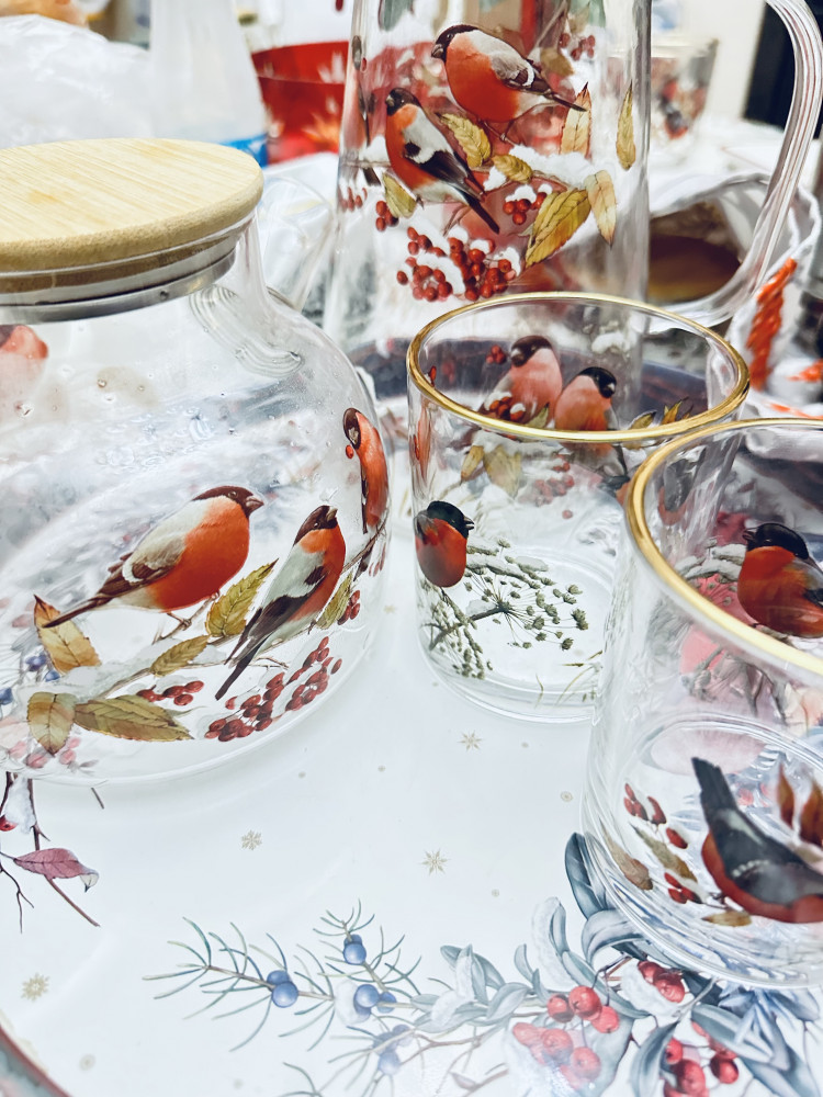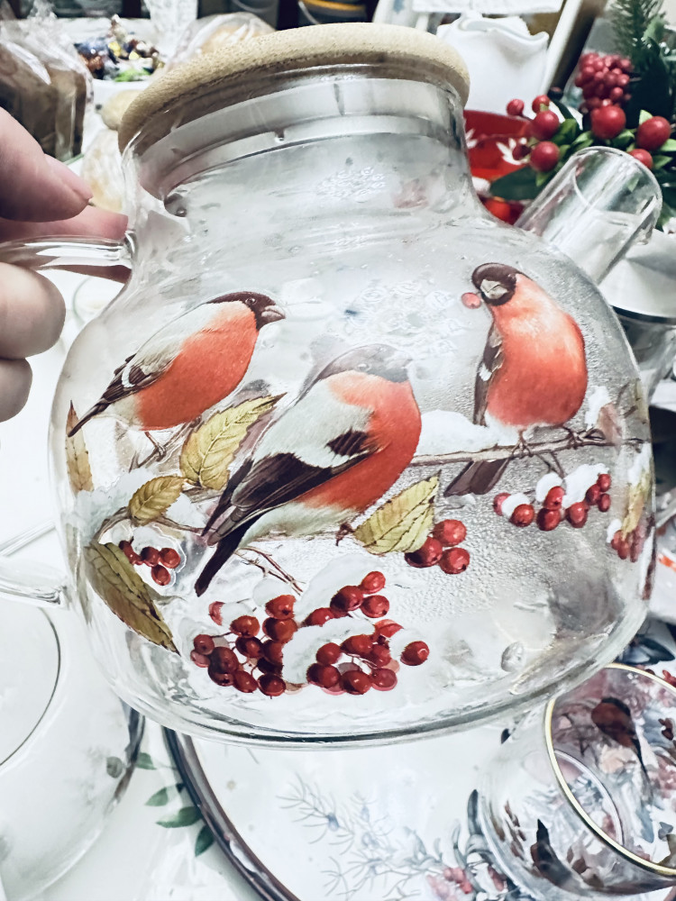 Красивый, купила к своему чайному сервизу со снигерями , есть такой же кувшин и стаканы.