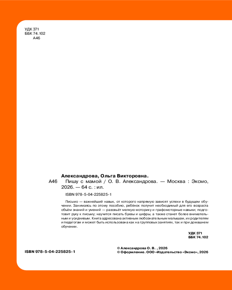 💳 Оплатить за товар можно при получении 🇰🇿 Есть бесплатная доставка по Казахстану от 1 дня 🎁 Копите бонусы с каждой покупки Серия: Учимся с мамой Это развивающее пособие поможет мальчикам и девочкам развить мелкую моторику в игровой форме, а также параллельно получить базовые знания — выучить буквы и цифры. Ведь во время письма процесс усвоения проходит гораздо быстрее. Обучение письму должно быть поэтапным: необходимо сформировать графические навыки и научить ребенка правильно и аккуратно работать карандашом. Тогда процесс письма в школе будет простым и интересным. Занимаясь, ребенок будет обводить линии по пунктиру, проходить лабиринты, рисовать по клеточкам, писать буквы и цифры. Книга-развивашка, предназначенная для совместных занятий мамы и ребенка, станет надежным помощником в процессе подготовки к школе. Простые задания легко выполнять дома, на прогулке или в дороге. Обучение, проходящее в виде веселой увлекательной игры, поможет ребенку не только развить ключевые навыки, но и почувствовать уверенность в своих силах. |
