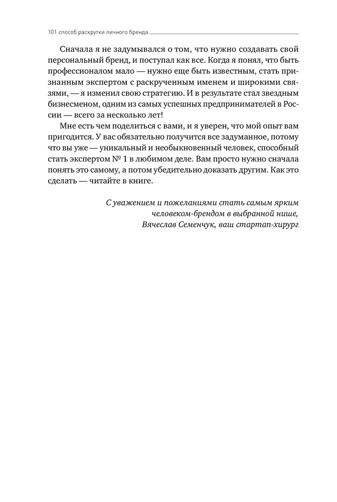 101 способ раскрутки личного бренда. Как сделать себе имяВячеслав Владимирович Семенчук В данный момент этот товар отсутствует в продаже. Возможно, у нас найдется аналогичный или похожий товар здесь. Серия: Маркетинг Рано или поздно на рынке останутся только те, кто есть в Сети, и чем раньше вы там появитесь, тем выше ваши шансы занять первое место в выбранной нише. |