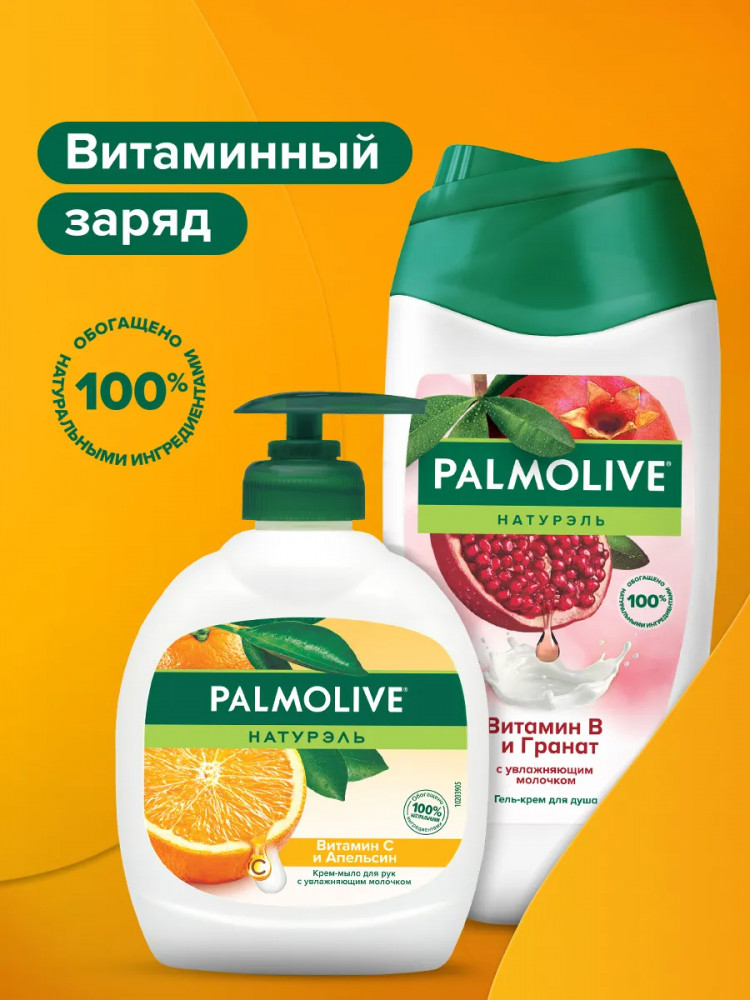 Крем-мыло для рук Palmolive Натурэль «Витамин C и апельсин», 300 мл: Aqua, Sodium Laureth Sulfate, Sodium Chloride, Cocamidopropyl Betaine, Sodium Salicylate, Parfum, Glycerin, Sodium Benzoate, Glycol Distearate, Lauryl Hydroxysultaine, Citric Acid, Polyquaternium-7, Coco-Glucoside, Tetrasodium EDTA, PEG-150 Pentaerythrityl Tetrastearate, PPG-2 Hydroxyethyl Cocamide, Glyceryl Oleate, Glyceryl Stearate, Sodium Ascorbyl Phosphate, Lactose, Whey Protein, Citrus Aurantium Dulcis Peel Extract, Lonicera Japonica Flower Extract, Citrus Aurantium Dulcis Peel Oil, Citrus Aurantifolia Oil, Citrus Paradisi Peel Oil, Limonene, Linalool.