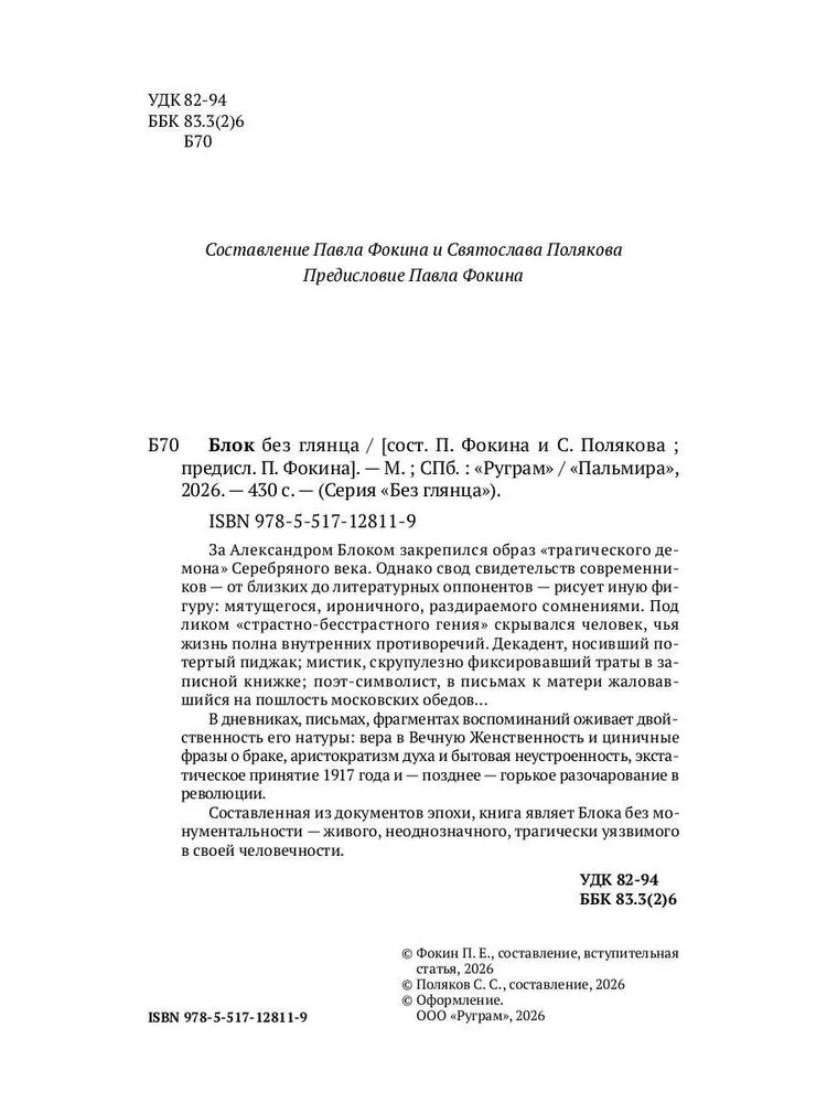 💳 Оплатить за товар можно при получении 🇰🇿 Есть бесплатная доставка по Казахстану 🎁 Копите бонусы с каждой покупки Серия: Без глянца За Александром Блоком закрепился образ «трагического демона» Серебряного века. Однако свод свидетельств современников — от близких до литературных оппонентов — рисует иную фигуру: мятущегося, ироничного, раздираемого сомнениями. Под ликом «страстно-бесстрастного гения» скрывался человек, чья жизнь полна внутренних противоречий. Декадент, носивший потертый пиджак; мистик, скрупулезно фиксировавший траты в записной книжке; поэт-символист, в письмах к матери жаловавшийся на пошлость московских обедов... |