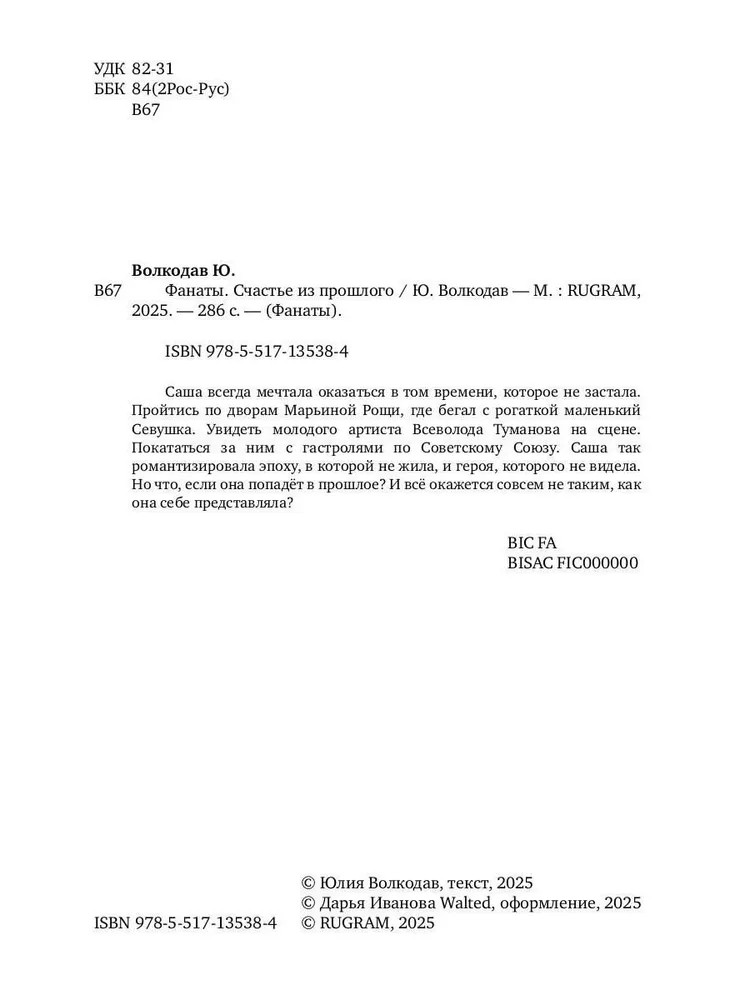 Серия: Фанаты Саша всегда мечтала оказаться в том времени, которое не застала. Пройтись по дворам Марьиной Рощи, где бегал с рогаткой маленький Севушка. Увидеть молодого артиста Всеволода Туманова на сцене. Покататься за ним с гастролями по Советскому Союзу. Саша так романтизировала эпоху, в которой не жила, и героя, которого не видела. Но что, если она попадёт в прошлое? И всё окажется совсем не таким, как она себе представляла? |
