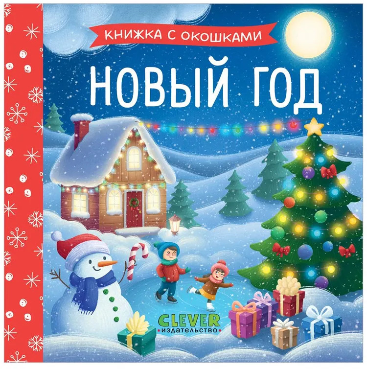 Плотный картон книжки для малышей 0–1, пять прочных клапанов-окошек, красивые иллюстрации, безопасные закругленные краешки и волшебство новогоднего настроения — все это книжка с окошками «Новый год»! Отличный новогодний подарок для детей, как и другие Clever книги, новогодние книги, которые выпускает издательство Clever, детские сказки и детские книги для малышей про новогодних волшебников.