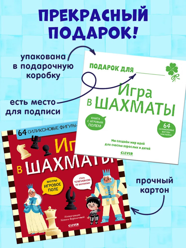💳 Оплатить за товар можно при получении 🇰🇿 Есть бесплатная доставка по Казахстану 🎁 Копите бонусы с каждой покупки Книга «Игра в шахматы», которую выпускает издательство Clever, познакомит ребенка с миром шахмат в доступной и увлекательной форме. |