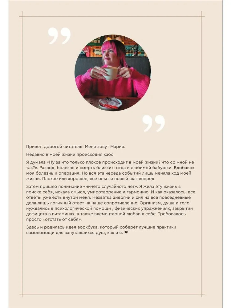 💳 Оплатить за товар можно при получении 🇰🇿 Есть бесплатная доставка по Казахстану 🎁 Копите бонусы с каждой покупки Серия: Моя территория Хватит теории! Этот воркбук — практические задания, которые сопроводят тебя при встрече с прошлыми обидами и страхами, укрепят настоящие намерения и пробудят интерес к будущему планированию. |