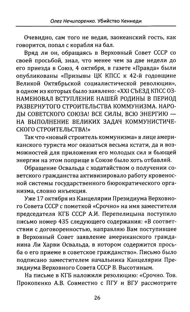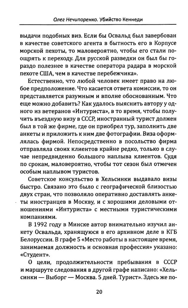 💳 Оплатить за товар можно при получении 🇰🇿 Есть бесплатная доставка по Казахстану 🎁 Копите бонусы с каждой покупки Серия: Документальный триллер Автор этой книги, полковник КГБ в отставке, ветеран внешней разведки Олег Нечипоренко, по долгу своей службы встречался с различными людьми. Был среди них и Ли Харви Освальд — убийца американского президента Джона Кеннеди. Занимаясь расследованием трагических событий в Далласе, автор использует не только результаты аналогичных зарубежных и отечественных исследований, но и собственные воспоминания и впечатления. В книге представлены ранее засекреченные материалы, уникальные советские и американские документы, касающиеся техасского убийства, рассмотрены новые версии покушения на Джона Кеннеди. |