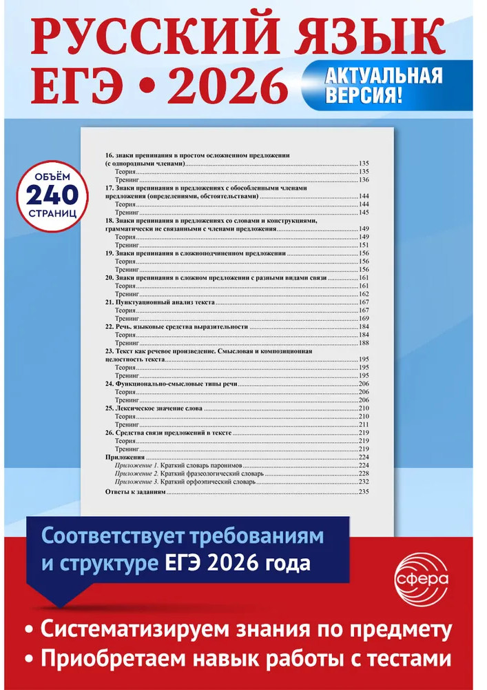 💳 Оплатить за товар можно при получении 🇰🇿 Есть бесплатная доставка по Казахстану от 1 дня 🎁 Копите бонусы с каждой покупки Серия: Готовимся к ЕГЭ В этой книге представлен полный курс русского языка, который станет незаменимым помощником для подготовки к единому государственному экзамену по русскому языку. Пособие включает в себя тренинговые задания, которые помогут учащимся уверенно справляться с экзаменационными требованиями. |