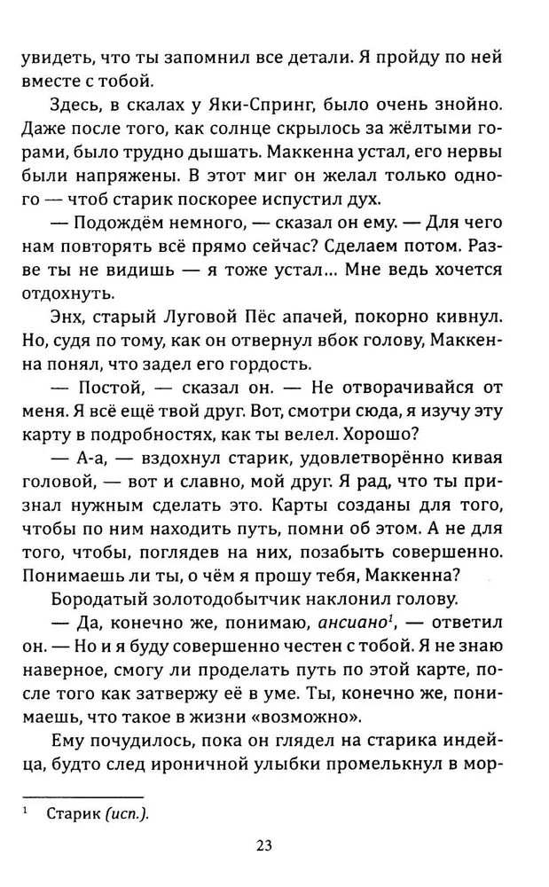 💳 Оплатить за товар можно при получении 🇰🇿 Есть бесплатная доставка по Казахстану 🎁 Копите бонусы с каждой покупки Серия: Инодетектив Дикий, дикий запад... Здесь ценится лишь золото, а человеческая жизнь не стоит и песка под ногами. Глен Маккенна нарушил это правило, оказывая последнюю услугу умирающему старику-индейцу из племени апачи. А тот, пораженный благородством белого, открывает ему заветную тайну этих мест — потайной путь в легендарный Сно-та-эй, Золотой Каньон, где золото валяется на земле, словно конские лепешки. Став единственным обладателем этой тайны, Маккенна сразу же превратился в желанный «приз» для авантюристов всех мастей, прежде всего — для индейца-полукровки Пелона и проводника белых рейнджеров Микки Тиббса. Попав в их лапы, старатель вынужден начать очень опасную игру, ставкой в которой является не только его жизнь, но и судьба одинокой девушки, в которую он влюблен. |