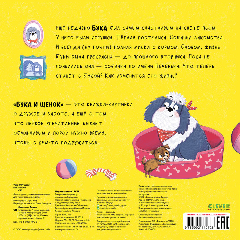 💳 Оплатить за товар можно при получении 🇰🇿 Есть бесплатная доставка по Казахстану 🎁 Копите бонусы с каждой покупки Серия: Книжки-картинки (мягкая обложка) «Бука и щенок» — это история с картинками о дружбе и заботе, а еще о том, что первое впечатление бывает обманчивым и порой нужно время, чтобы с кем-то подружиться. Еще недавно Бука был самым счастливым на свете псом. У него были игрушки. Тёплая постелька. Собачьи лакомства. И всегда (ну почти) полная миска с кормом. Словом, жизнь Буки была прекрасна — до прошлого вторника. Пока не появилась она — собачка по имени Печенька! Что теперь станет с Букой? Как изменится его жизнь? || В книге небольшое количество текста и яркие веселые иллюстрации. Так как в раннем возрасте ребенок воспринимает информацию визуально, это идеальное издание, чтобы привить малышу любовь к чтению. |