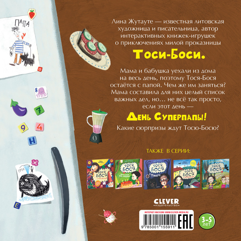 Тося-Бося и день СуперпапыВ данный момент этот товар отсутствует в продаже. Возможно, у нас найдется аналогичный или похожий товар здесь. «Тося-Бося и День Суперпапы» — это новый смешной день из жизни веселой Тоси-Боси.Мама и бабушка отлучились по делам, а значит, сегодня у Тоси будет необычный день — День Суперпапы! Такой день нужно начинать с суперблинчиков, затем обязательно пойти кататься на велосипеде, запускать воздушного змея, учиться плавать и делать все самое интересное! Суперпапы умеют чинить вещи, мастерить все что угодно, готовить самую вкусную пиццу, считать до миллиона и обратно и еще тысячу интересных вещей!Тося-Бося умеет превратить любой день в веселое приключение, именно поэтому ее обожают дети. Эта книжка порадует детей, мам и, конечно же, пап! |