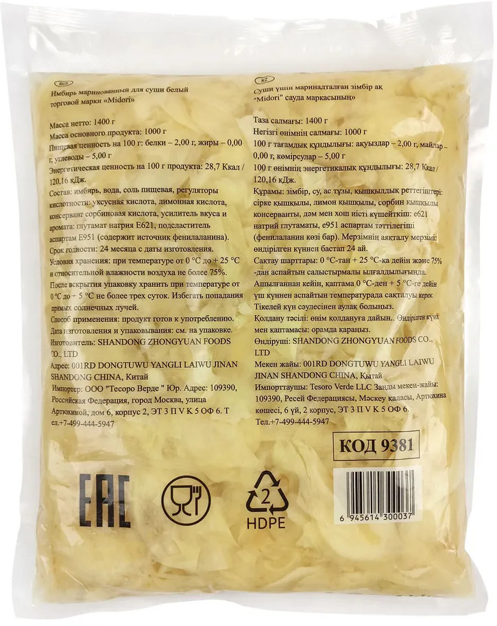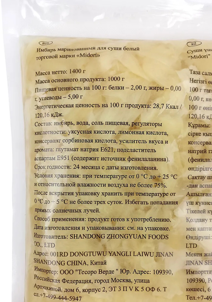 Является популярным ингредиентом в азиатской и индийской кухне. Он используется для придания аромата, остроты и свежести блюдам, таким как карри, пекинская утка, суши, маринады и соусы. Имбирь оттеняет вкус морепродуктов, особенно в сочетании с васаби. Имбирь можно также добавлять в чай для придания ему особого вкуса. Помогает снизить воспаления в организме и укрепить иммунную систему, поэтому часто используется при лечении простуды. Имбирь улучшает пищеварение и помогает при отравлениях. Регулярное употребление имбиря оказывает благоприятное воздействие на состояние кожи и волос. Продукт обладает энергизирующим и стимулирующим свойствами, бодрит, улучшает настроение и снимает усталость. |