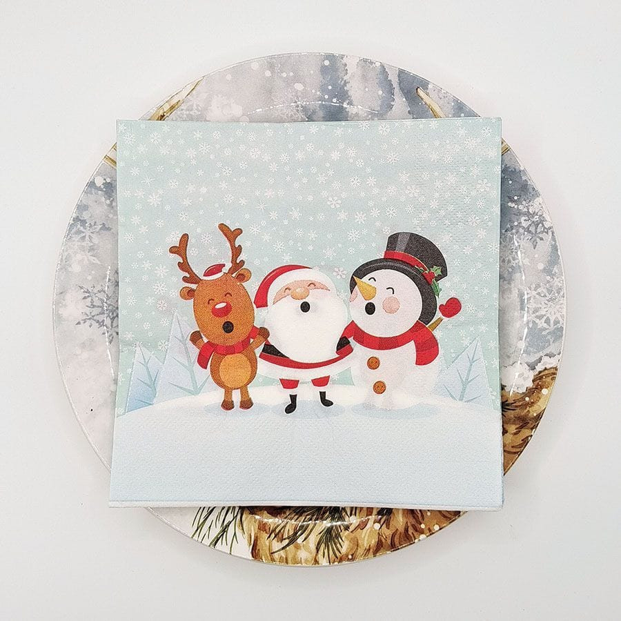 Новогодние салфетки «Санта со снеговиком»+19
