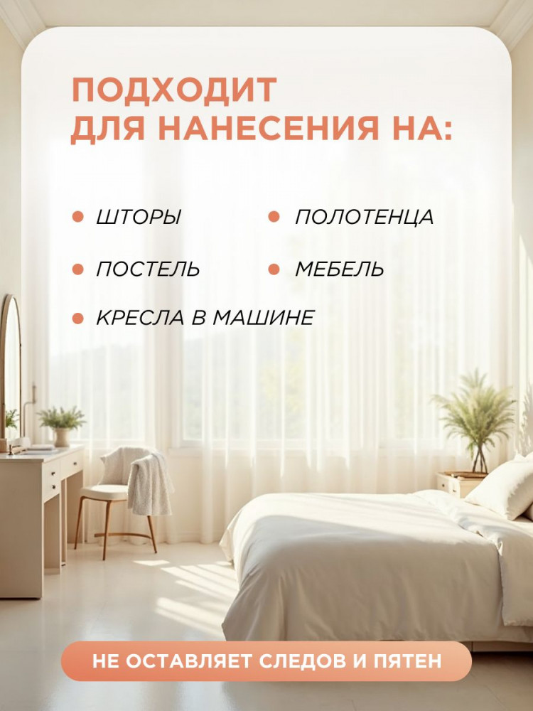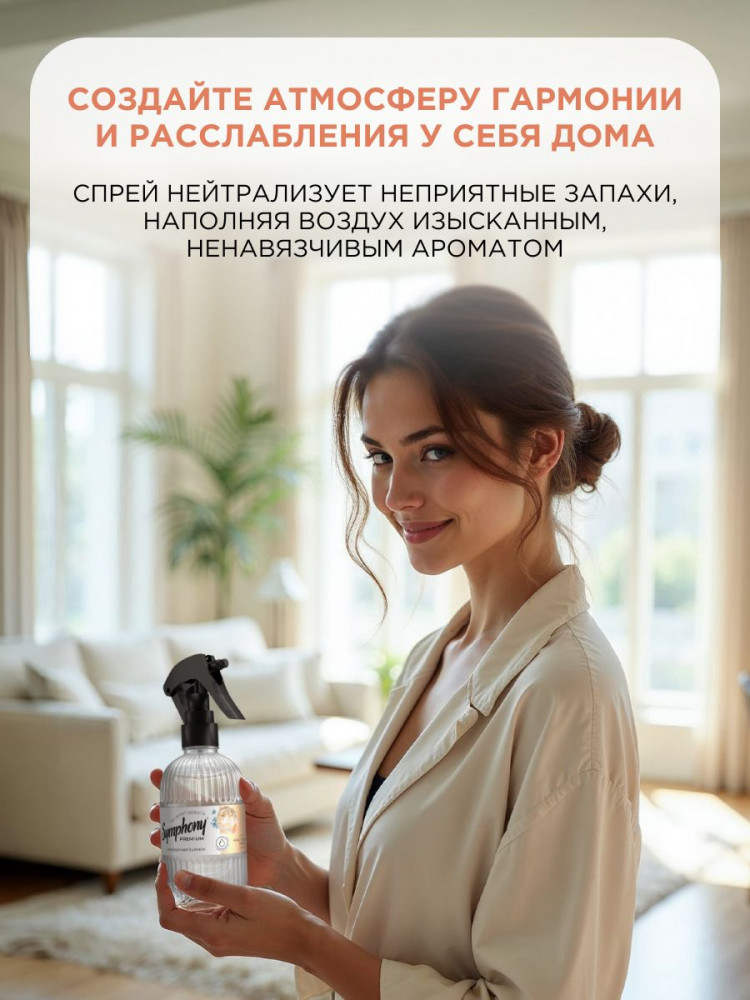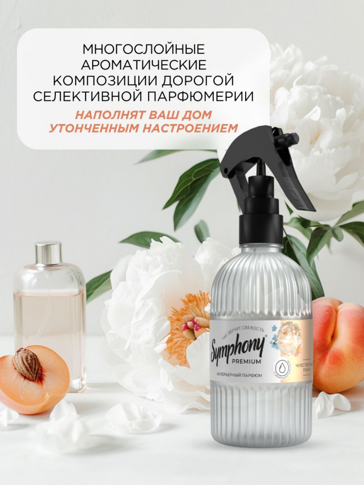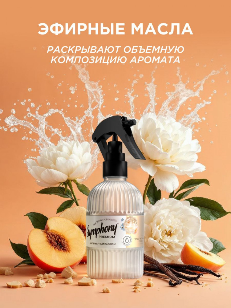 Применяйте акваспрей на водной основе как отдушку в шкаф для одежды, текстиля, ковров и обивки. Распылите парфюм на постельное или нательное бельё — парфюмированный шлейф сохранится надолго и подарит ощущение свежести после каждого прикосновения. Нейтрализатор запаха идеален и для автомобиля, оставляя в салоне стойкий, но ненавязчивый аромат. Используйте бытовую химию Symphony Premium и наслаждайтесь ощущением свежести, которое остается надолго.