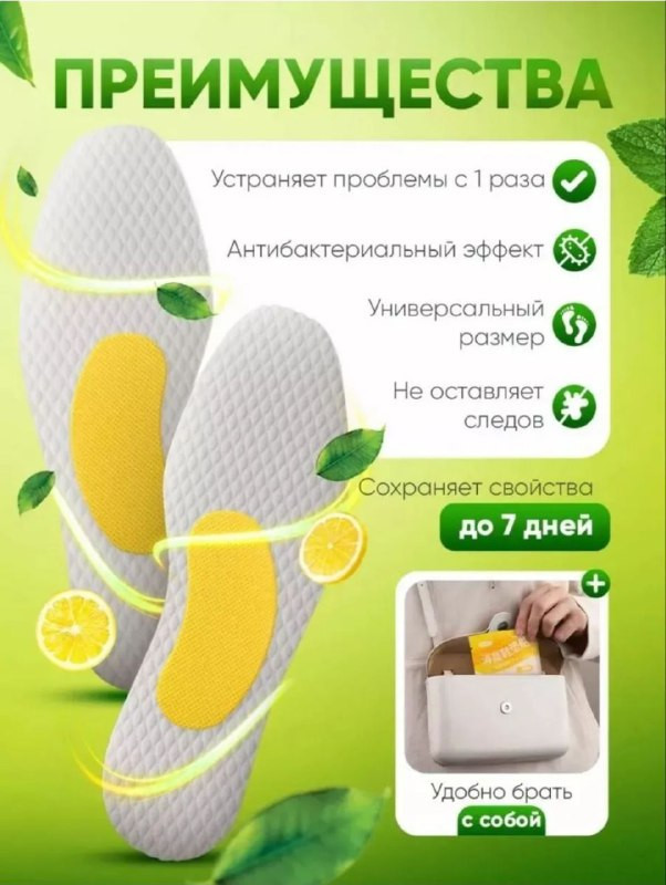 Набор ароматических стикеров для обувиВ данный момент этот товар отсутствует в продаже. Возможно, у нас найдется аналогичный или похожий товар здесь. Хотите избавиться от неприятного запаха в обуви и наслаждаться свежестью каждый день? Тогда дезодорирующие стельки — идеальное решение для вас! Забудьте о проблеме неприятного запаха — наш дезодорант для обуви от запаха, специально разработанный для борьбы с потом, эффективно предотвращает его возникновение и придаёт вашей обуви свежесть. |