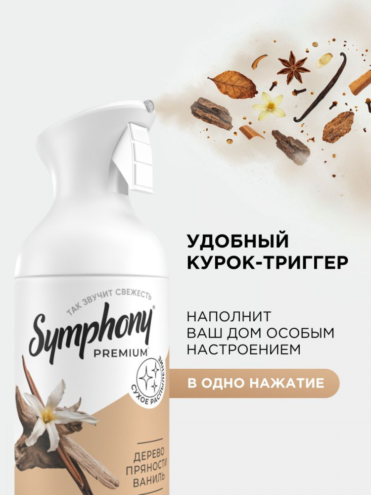 Флакон с курком-триггером позволяет регулировать силу нажатия, контролируя объем распыления парфюма и наполняя ваш дом особым настроением в одно нажатие. Нейтрализатор запаха идеален и для автомобиля, оставляя в салоне стойкий, но ненавязчивый аромат. Используйте освежители воздуха Symphony Premium и наслаждайтесь ощущением свежести, которое остается надолго.