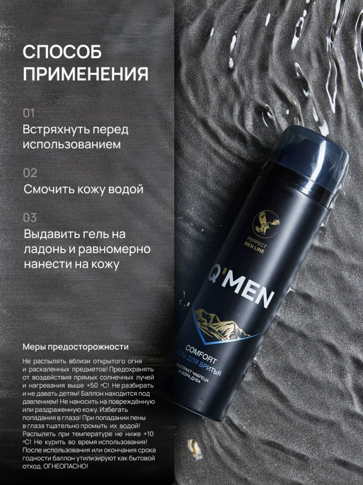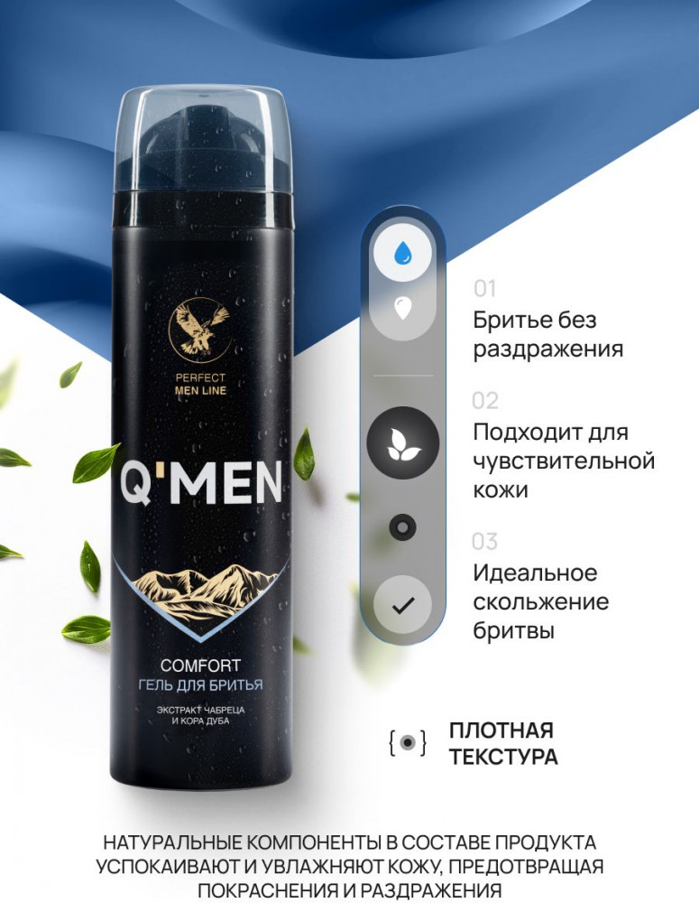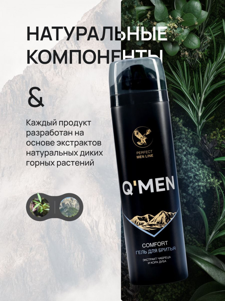 Q'men Гель для бритья с экстрактом чабреца и корой дуба «Comfort»