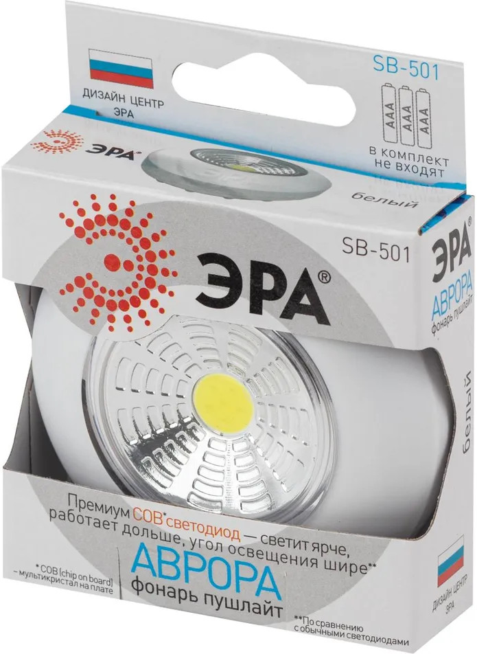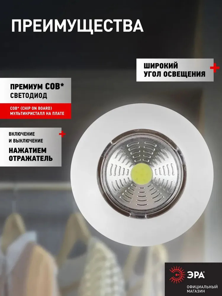 Эра Фонарь-подсветка пушлайт «Аврора»+49 мягкая кнопка надежное крепление легкий монтаж яркость света производитель
