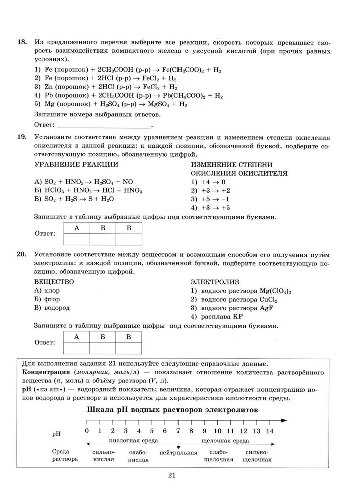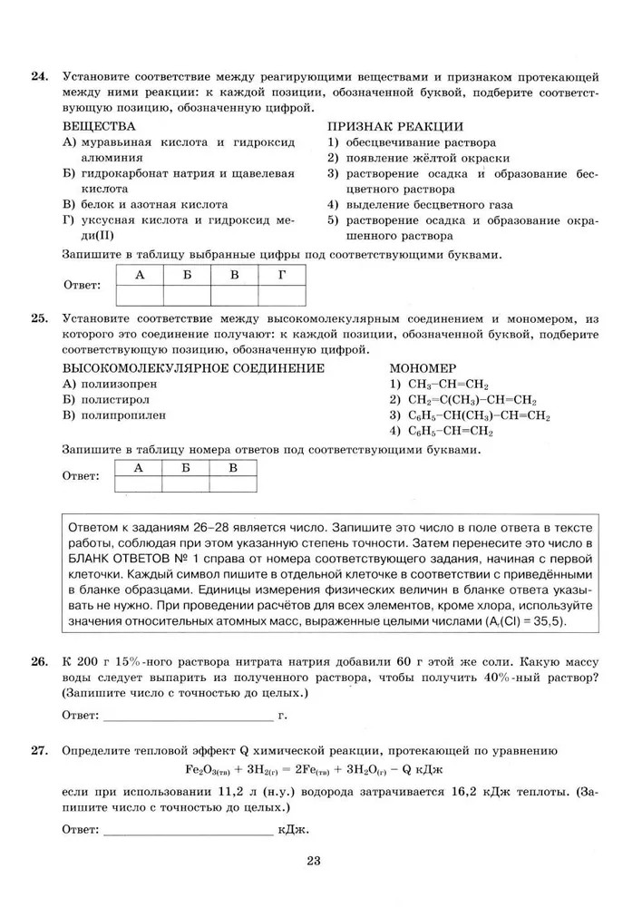 Пособие прошло научно-методическую оценку ФГБНУ «ФИПИ». Пособие содержит 12 типовых вариантов экзаменационных заданий Единого государственного экзамена по химии. Назначение пособия — предоставить возможность обучающимся отработать навыки выполнения заданий, аналогичных заданиям, представленным в демонстрационной версии ЕГЭ по химии. Пособие адресовано учителям для подготовки учащихся к Единому государственному экзамену, а учащимся-старшеклассникам — для самоподготовки и самоконтроля.  |