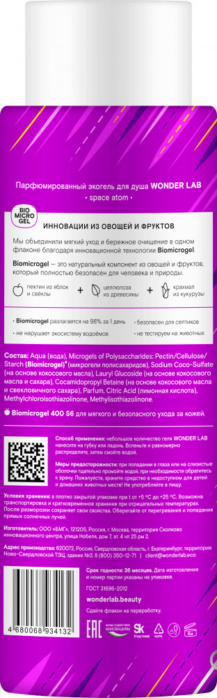 Wonder Lab Экогель для душа парфюмированный «Space Atom»