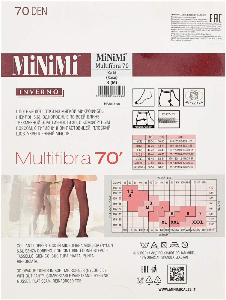 MINIMI Колготки женские «Multifibra Colors 70»