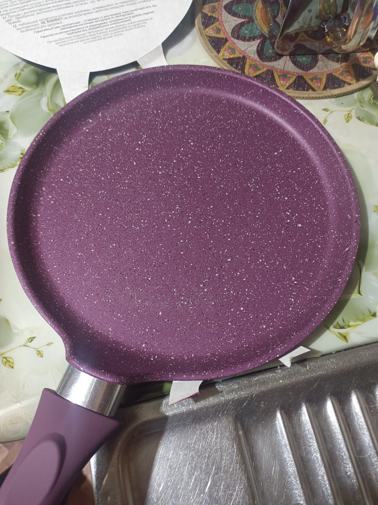 Отличная сковородка, цвет, дизайн. Пекла блинчики, ничего не пригорает, легко снимаются
