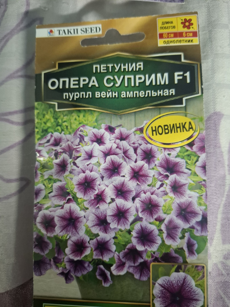 Аэлита Семена петунии ампельной «Опера суприм F1 пурпл вейн»+53 упаковка целостность состояние