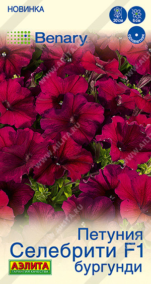 Очень известная в мире серия гибридов многоцветковых кустовых петуний. Заслуженно получила название «Celebrity», что в переводе означает «знаменитость». Растения отличаются выровненным габитусом, прекрасным боковым ветвлением, высокой декоративностью на протяжении всего сезона. Не боятся дождя и ветра. Высота кустиков около 30 см, диаметр цветков 5-6 см. Петунии великолепно смотрятся в разнообразных ландшафтных композициях в саду. В подвесных кашпо, контейнерах и вазонах для одного растения требуется до 5 л плодородного грунта.