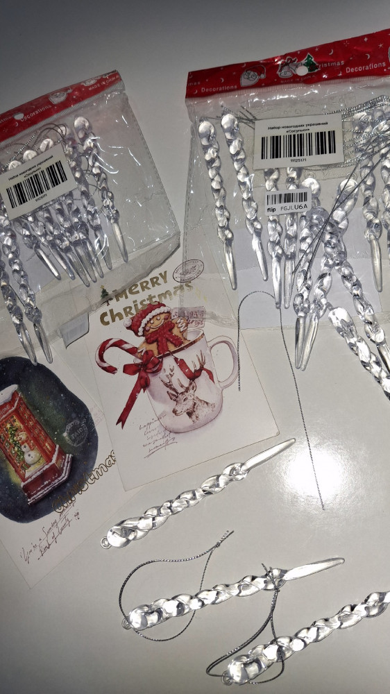 Набор новогодних украшений «Сосульки»дизайн упаковка открытка В данный момент этот товар отсутствует в продаже. Возможно, у нас найдется аналогичный или похожий товар здесь. Набор ёлочных сосулек — это настоящее зимнее волшебство, способное наполнить дом атмосферой праздника и уюта. Прозрачные, словно настоящие, они изящно переливаются в свете гирлянд, создавая ощущение морозного утра и свежего зимнего воздуха. Изготовленные из прочного, небьющегося материала, эти украшения абсолютно безопасны и подойдут для семьи с детьми. Сосульки гармонично впишутся в любой стиль новогоднего декора — ими можно украсить не только ёлку, но и венки, гирлянды или праздничный стол. Они сохраняют свой блеск и красоту из года в год, напоминая о чуде, которое приходит с каждым Новым годом. |