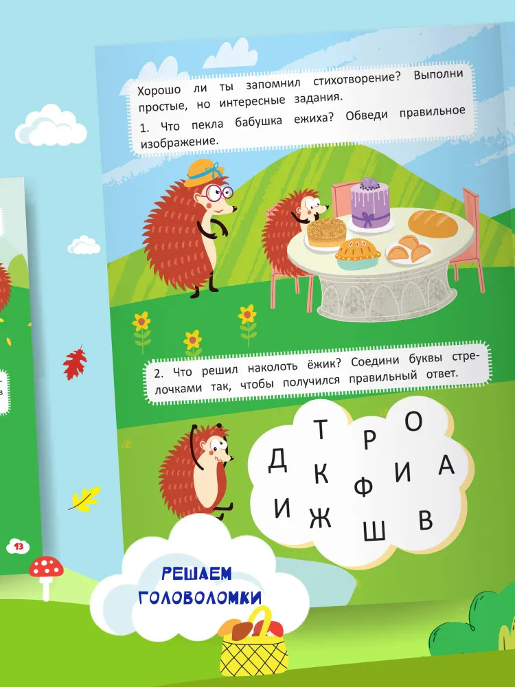 💳 Оплатить за товар можно при получении 🇰🇿 Есть бесплатная доставка по Казахстану 🎁 Копите бонусы с каждой покупки Серия: Развитие речи Детская книжка «Приключения ежика. Стихи. Головоломки. Загадки» — развивающая книга для будущих первоклассников. Занимательные истории из жизни ежика и его друзей рассказаны в стихотворной форме. |