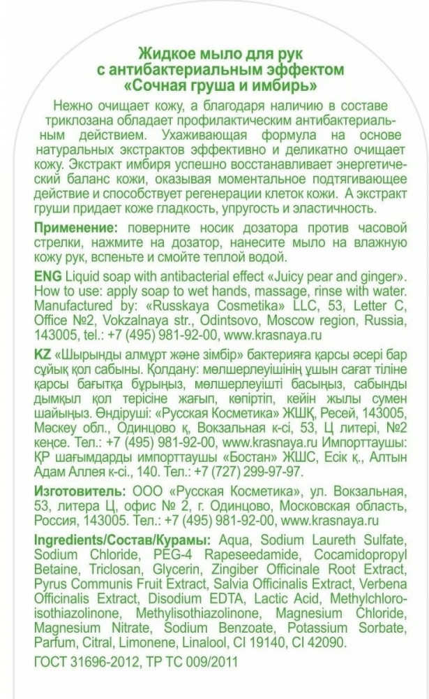 Красная линия Мыло для рук жидкое «Сочная груша и имбирь»