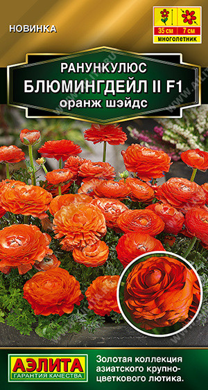Аэлита Семена ранункулюса «Блюмингдейл II F1 оранж шэйдс»В данный момент этот товар отсутствует в продаже. Возможно, у нас найдется аналогичный или похожий товар здесь. Серия: Золотая серия Знаменитая серия гибридов ранункулюса (азиатского лютика) «Bloomingdale II» от компании Sakata с крупными махровыми цветками диаметром 5-7 см. Главные достоинства растений — их выносливость при выращивании из семян, а также раннее и равномерное цветение, которое при соблюдении агротехники впервые начинается спустя 20-22 недели после посева. Этот корневищный многолетник в средней полосе лучше растет в горшечной культуре в комнате и оранжерее, в теплое время года выращивается на балконе и в саду. Формирует густые и приземистые кустики с резными листьями, высотой до 25-35 см (в горшках — до 20 см), шириной около 20-30 см. В цветниках к осени 1-го года жизни растения образуют корнеклубни, их выкапывают, просушивают и хранят при температуре 4-6 °С до майской высадки в грунт. Посев стратифицированных семян на глубину до 0,5-1 см при соблюдении стабильной влажности, температуры 15-20 °С. Всходы (через 2-3 недели) нуждаются в досвечивании (около 10 ч.) и проветривании. Сеянцы в фазе 3 пар настоящих листьев пересаживают в горшки или контейнеры (на расстоянии друг от друга 10-15 см). Культура предпочитает легкую, удобренную, хорошо увлажненную почву и полутень. Не выносит заморозки, холодные ветра и летний зной. |