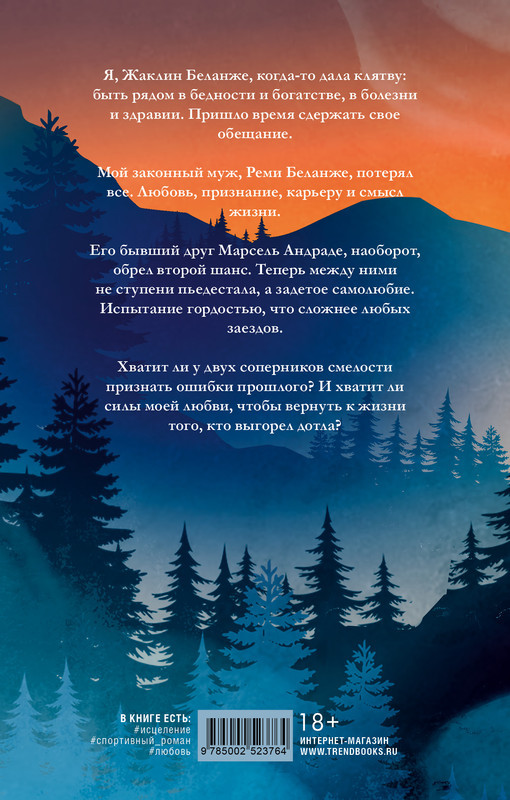 💳 Оплатить за товар можно при получении 🇰🇿 Есть бесплатная доставка по Казахстану от 1 дня 🎁 Копите бонусы с каждой покупки Серия: Trendbooks. Романы Виктории Побединской (подарочные) Я, Жаклин Беланже, когда‑то дала клятву: быть рядом в бедности и богатстве, в болезни и здравии. Пришло время сдержать свое обещание. Мой законный муж, Реми Беланже, потерял все. Любовь, признание, карьеру и смысл жизни. Его бывший друг Марсель Андраде, наоборот, обрел второй шанс. Теперь между ними не ступени пьедестала, а задетое самолюбие. Испытание гордостью, что сложнее любых заездов. Хватит ли у двух соперников смелости признать ошибки прошлого? И хватит ли силы моей любви, чтобы вернуть к жизни того, кто выгорел дотла? |