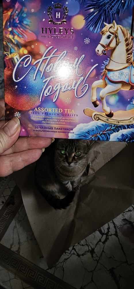 Сняла звезду, т.к. заказывала чай из-за коробочки с лошадкой в подарок. А так упаковка хорошая.