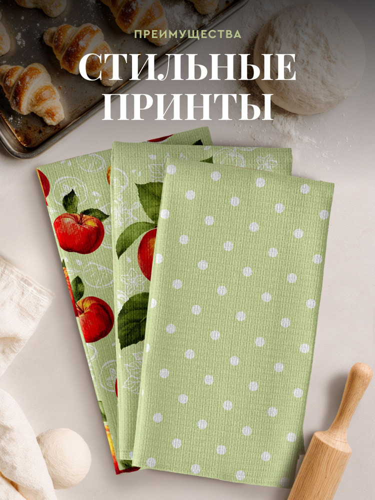 💳 Оплатить за товар можно при получении 🇰🇿 Есть бесплатная доставка по Казахстану от 1 дня 🎁 Копите бонусы с каждой покупки Серия: Apples Комплект вафельных полотенец — лучший подарок для настоящей хозяйки! Кухонные полотенца из 100% хлопка быстро впитывают влагу и легко отстирываются. Устойчивая к износу ткань позволит им всегда выглядеть аккуратно. Стильные полотенца плотностью 150 г/м2 можно использовать хоть каждый день! Вафельные полотенца подойдут, чтобы вытереть руки или посуду, а еще ими удобно смахнуть крошки со стола. Светло-зеленые полотенца с яблоками создадут в доме особую атмосферу! Контрастная расцветка делает их стильным дополнением столовой, а еще набор можно использовать в качестве гостевых полотенчиков. |