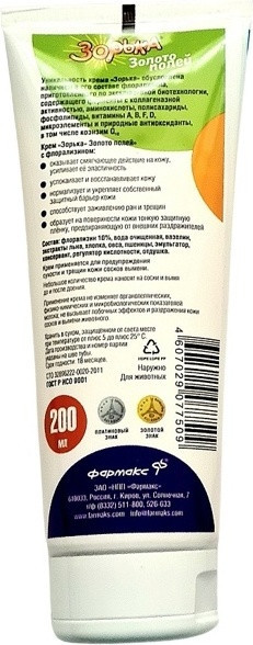 💳 Оплатить за товар можно при получении 🇰🇿 Есть бесплатная доставка по Казахстану от 1 дня 🎁 Копите бонусы с каждой покупки В состав крема «Зорька. Золото полей» с флорализином включен сбор злаковых и прядильных культур из овса, пшеницы, льна и хлопка, успокаивающий и восстанавливающий гидролипидный баланс кожи. Применение крема нормализует работу и укрепляет собственный защитный барьер кожи. Крем обладает нежным фруктовым ароматом. Крем «Зорька. Золото полей» предназначен для ежедневного ухода за кожей сосков и вымени дойных животных. |