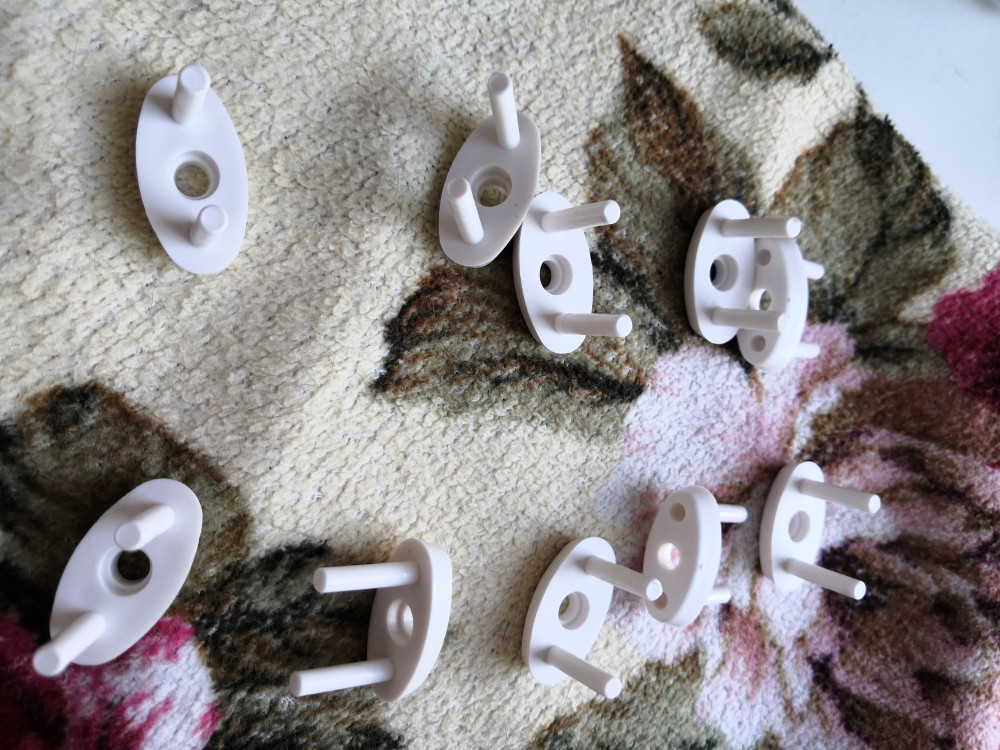 Простые заглушки для розеток, плотно зашли в отверстия, прсто так не вытянешь, что и хорошо. Спасибо, Флип!