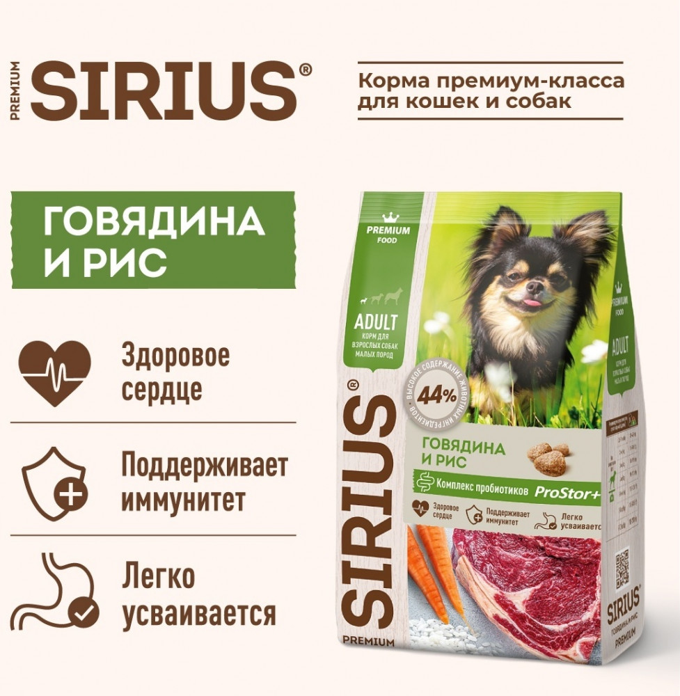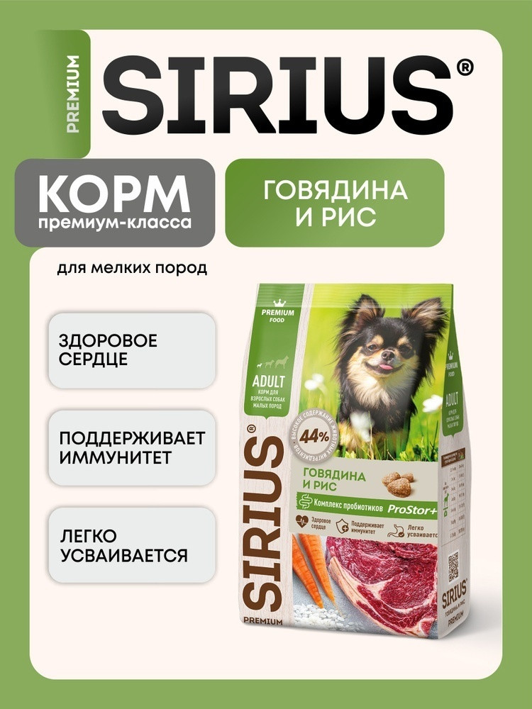 Sirius Сухой корм для взрослых собак мини пород с говядиной и рисом