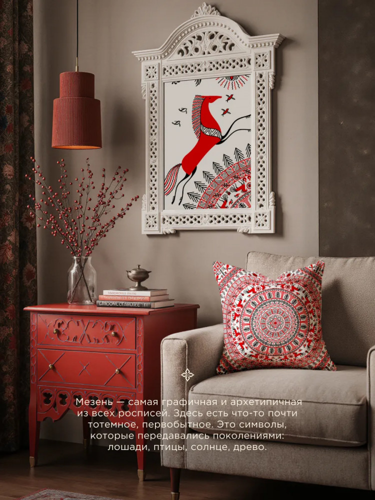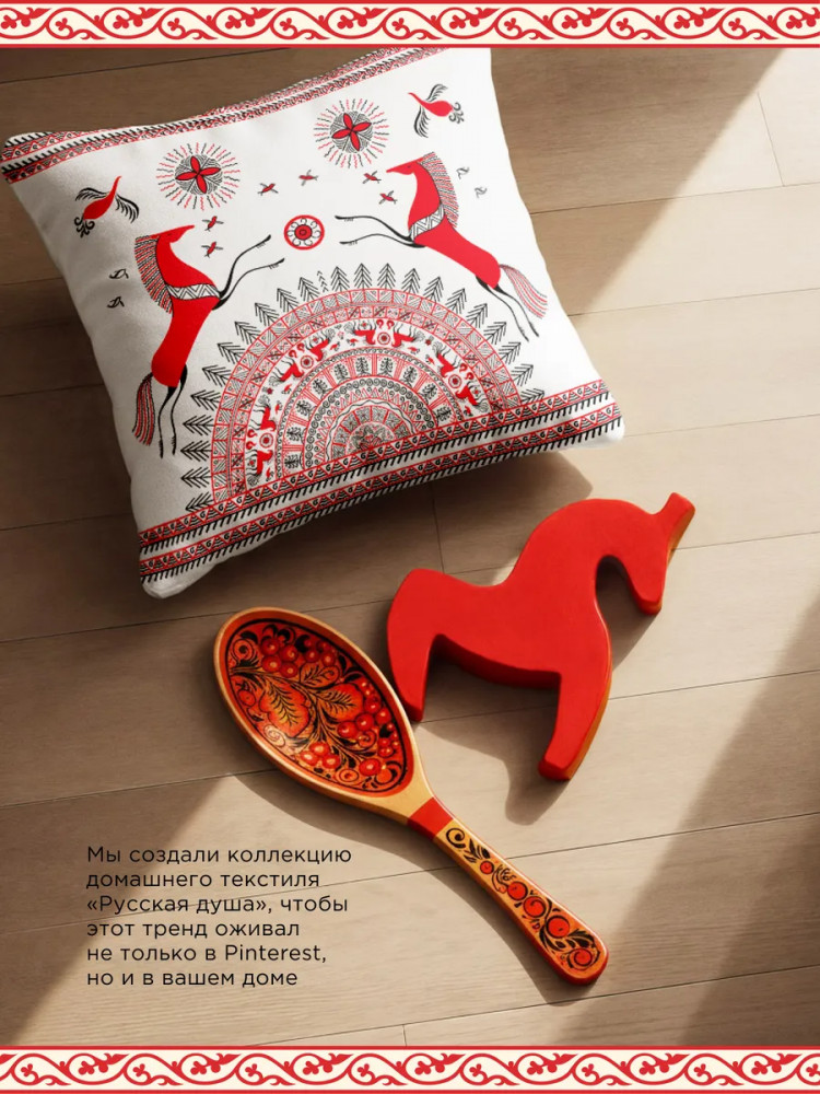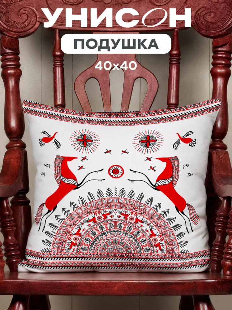 Подушка декоративная габардин «Унисон» 40×40 Мезенская — стильный и яркий элемент декора, который добавит в ваш интерьер нотку оригинальности и индивидуальности. Подушка выполнена из габардина — прочной и износостойкой ткани, которая не теряет своих качеств даже после многократных стирок. Благодаря этому, подушка будет служить вам долгое время, сохраняя свою первоначальную яркость и свежесть. Дизайн подушки «Мезенская» выполнен в виде яркого и красочного рисунка, который будет радовать глаз и поднимать настроение. Этот рисунок станет отличным акцентом в интерьере и подчеркнет вашу индивидуальность.
